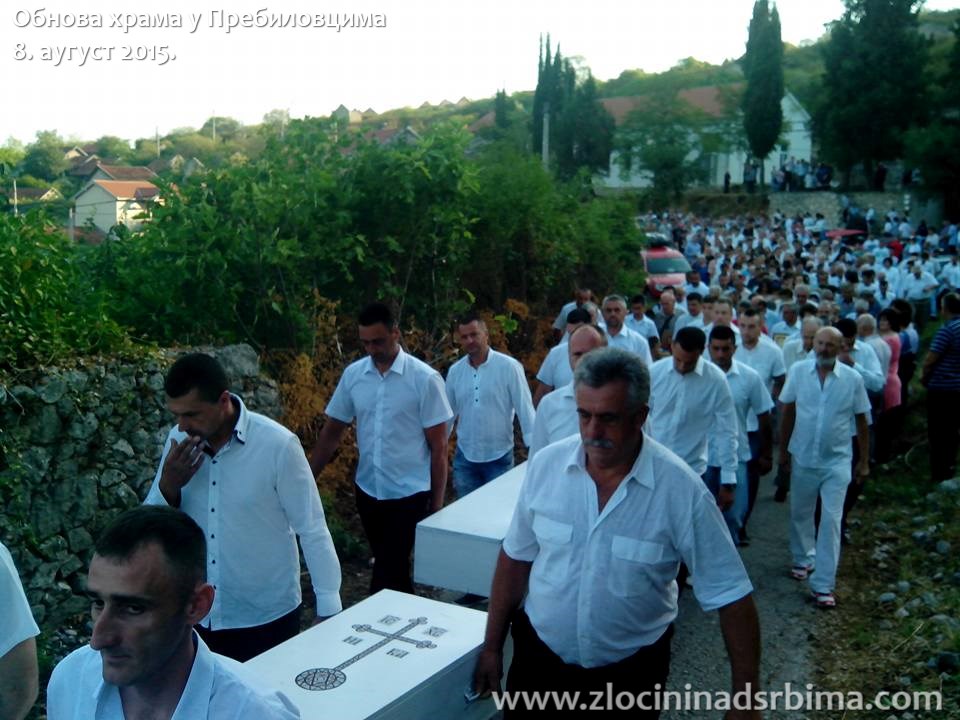 Село Пребиловци, у долини хладне Неретве, на само седам километара од Чапљине, овог осмог августовског дана постало је осведочено знамење Васкрсења. Сведочанство је још једне српске мученичке епопеје. Село које је претрпело усташки ужас - велико стратиште, постало је место победе живота и љубави према сваком човеку и ближњем. Остаци моштију Срба Пребиловца пострадалаих од усташке војске 1941-1945, нашли су после 74 године, своје коначиште. И свој мир. То је најмање, што им ми, њихови сународници и потомци-дугујемо.