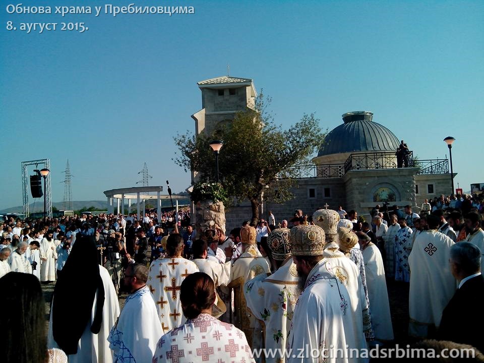 Дуго ће се у Пребиловцима памтити дан када је Патријарх српски Иринеј, уз саслужење владика, освештао нови Храм Васкрсења Христовог, саграђен у спомен на 4.000 Срба доње Херцеговине пострадалих у Другом св. рату од усташа, бачених у 12 јама. Њихове кости, кратко време чуване у сеоској спомен-костурници, миниране су у току рата у Хрватској 1992. Остаци мученика, похрањени у Дому културе, чекали су на овај дан. Пребиловци су својеврстан симбол страдња српског народа у усташким ужасима и покољима у време Другог светског рата у НДХ. Али, и много више од тога, јер су у недавном рату у Хрватској кости мученика сметале, управо, потомцима злочинаца. Ово српско село је знамење тријумфа љубави над мржњом. Љубав су исказали Срби на челу са својим свештенством и црквеним великодостојницима, показавши да време не може да избрише сећање на страдале Србе доње Херцеговине. Да не постоје силе које могу да избришу злочине.