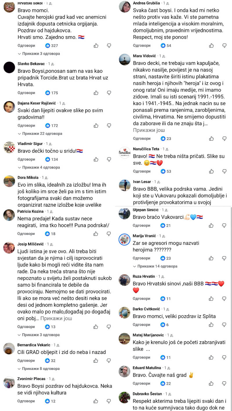 Подршку "навијачима" дали су и градоначелник Маријан Павличек, али и Влада РХ у Загребу, рекавши да та изложба не може да се одржи у новембру месецу који домољубима служи за оплакивање "Жртве Вуковара". Тако је и та изложба одложена за децембар. Да ли ће то стварно ипак бити одржано и колико ће смети људи доћи на исту, видећемо.