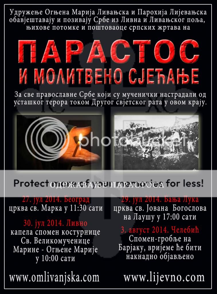 Удружење Огњена Марија Ливањска и Парохија Лијевањска обавјештавају и позивају Србе из Ливна и Ливањског поља, њихове потомке и поштоваоце српских жртава на: